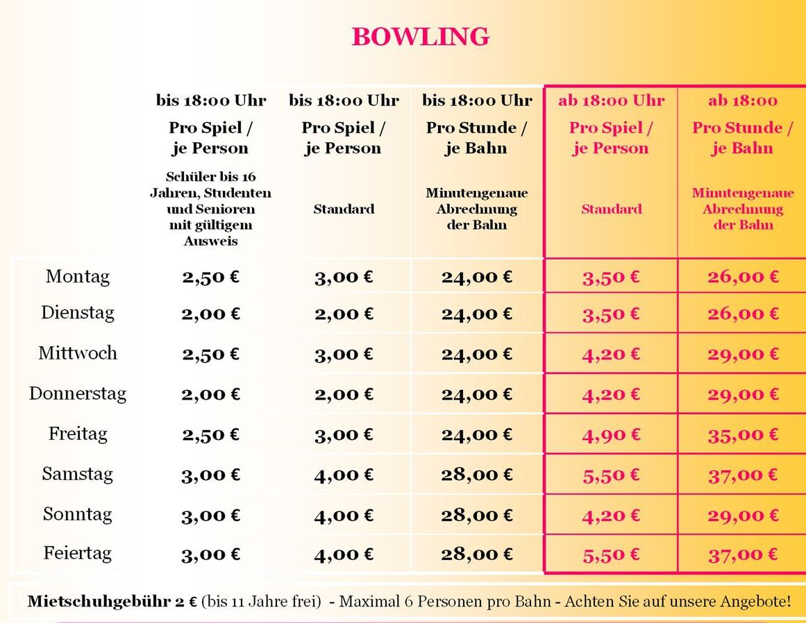 Bowlingpreise & Aktionen (01.Oktober bis 31.Mai)